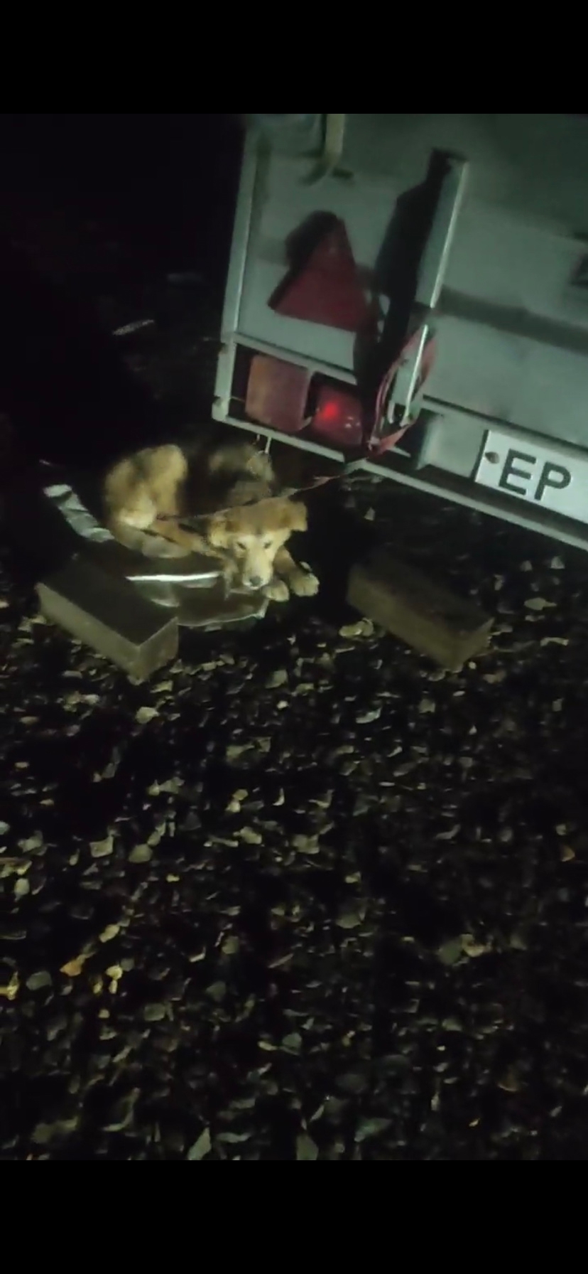 Девушка нашла щенка, привязаного к прицепу. Рядом нет ни еды, ни воды.