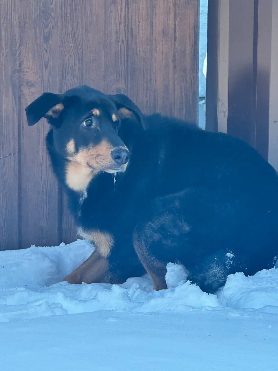 Найден пес, черный с рыжим подпалом.  Похожий на метиса добермана. Без каких либо амуниций. Очень не контактный, рычит при приближение к нему.