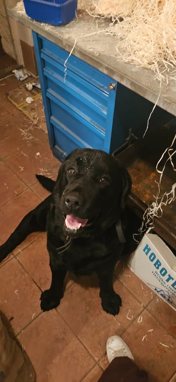 Найден пёс. На вид лабрадор, окрас чёрный. Судя по зубам, молодой совсем.