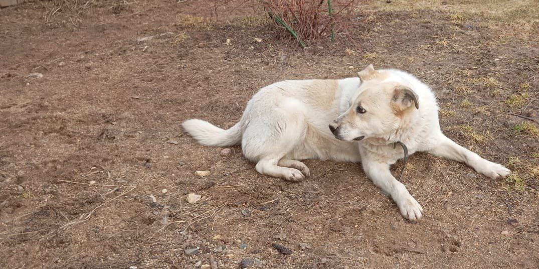ПОМОГИТЕ НАЙТИ!!! 09.11.2025г. в д.Козино (район Нахабино, Красногорский округ), пропала собака. Кличка Джуля. 8 лет. Чипа, адресника нет. Черный тканевый ошейник. Белая, с палевыми пятнами на голове, спине, боках. Приметная деталь – шрам на морде перед носом. Общительная, доброжелательная, осторожная.