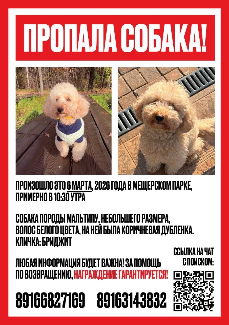 ⚠️ Пропал(а) собака 📍 Москва, Мещерский парк 6 марта, 2026 года 🚨..