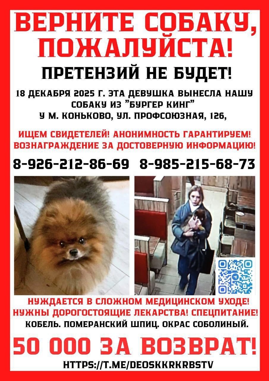 ⚠️ Пропал(а) собака 📍 Москва, район метро..