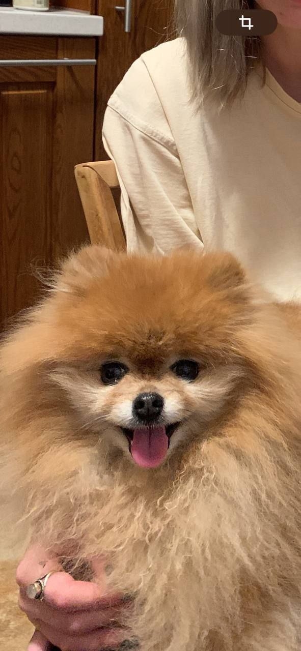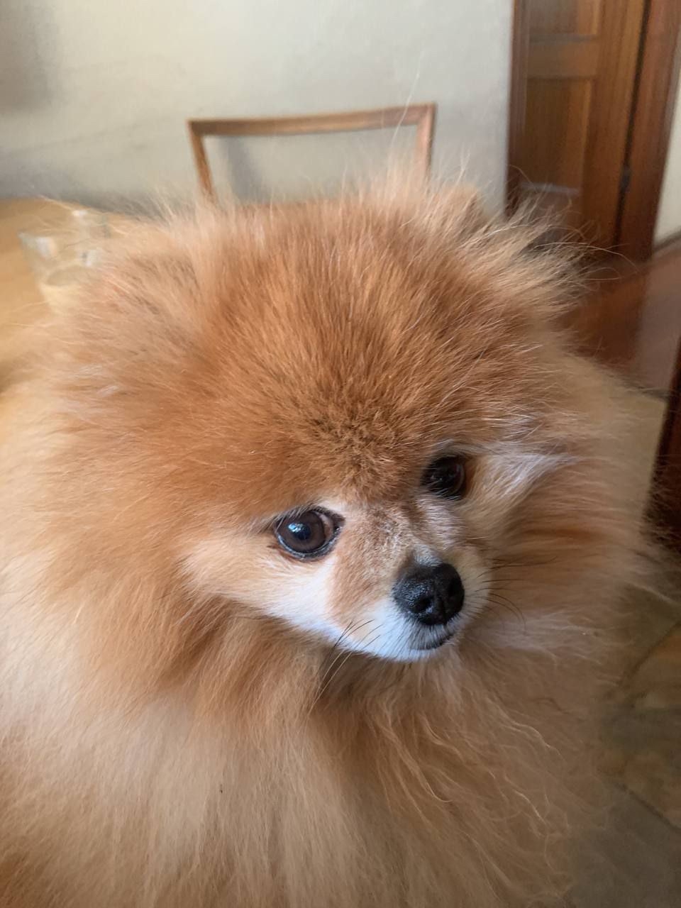 Померанский шпиц, рыжий, бело-седая мордочка-улыбка, бежевый живот, 11 лет, есть клеймо, стерилизован, проблемы со здоровьем.