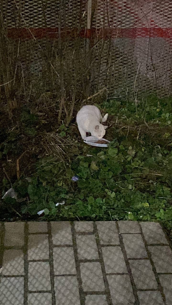 Замечена молодая кошечка,возможно подросток. Окрас белый,амуниций нет,очень пуглива,близко не подпускает.Поймать не удалось. Со слов кассира на жд,не первый день там. Прячется в кустах.
