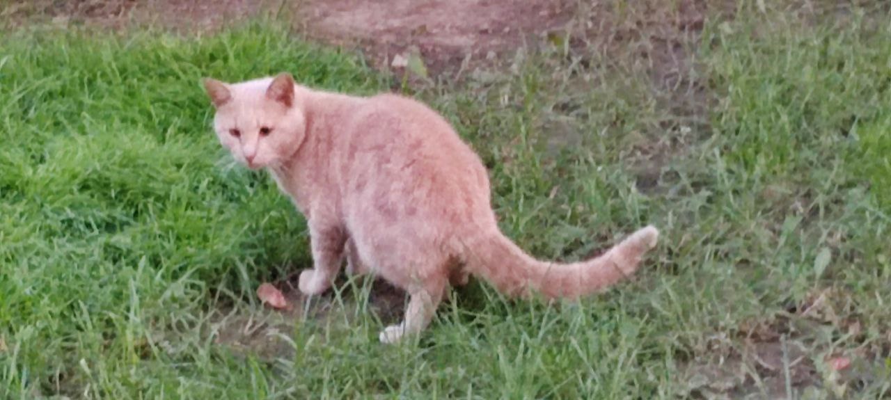 Прибился к дому рыжий котик. Не местный. В подвал его не пускают. Ночует под балконом или у подъезда под лавкой. Кормилица говорит, что уже 1,5 мес., как пришёл. Окрас по бокам пятнистый рыжий с персиковым. Хвост в полоску. Хозяин, забири своё сокровище.