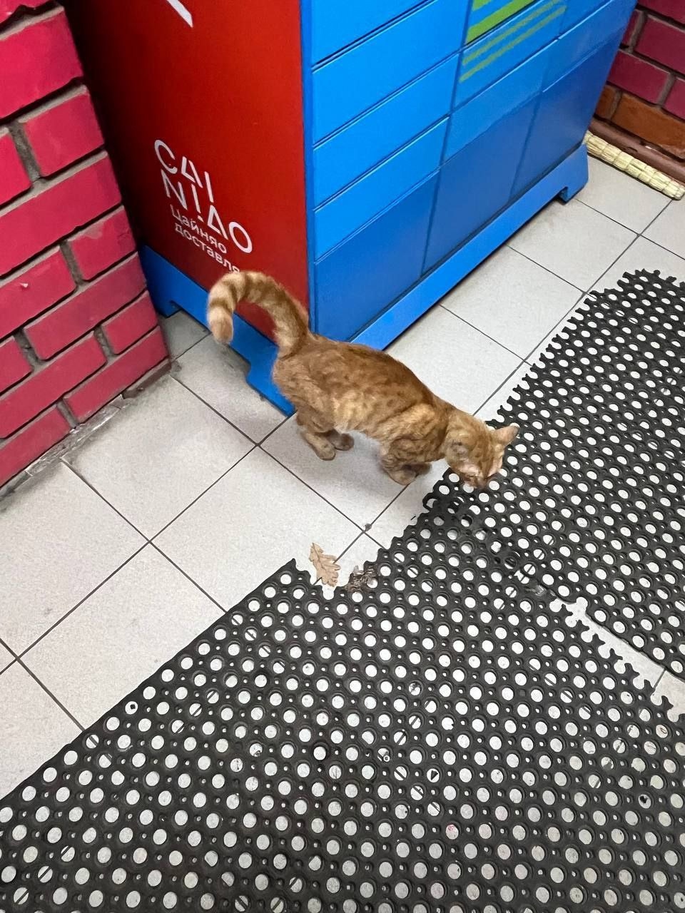 04.00 утра 29.08 Заметил постоянно мякующего рыжего кота около магазина Авакадо, он очень ручной, видимо потерялся, так как хозяйка магазина говорит, что первый вечер как появился тут.