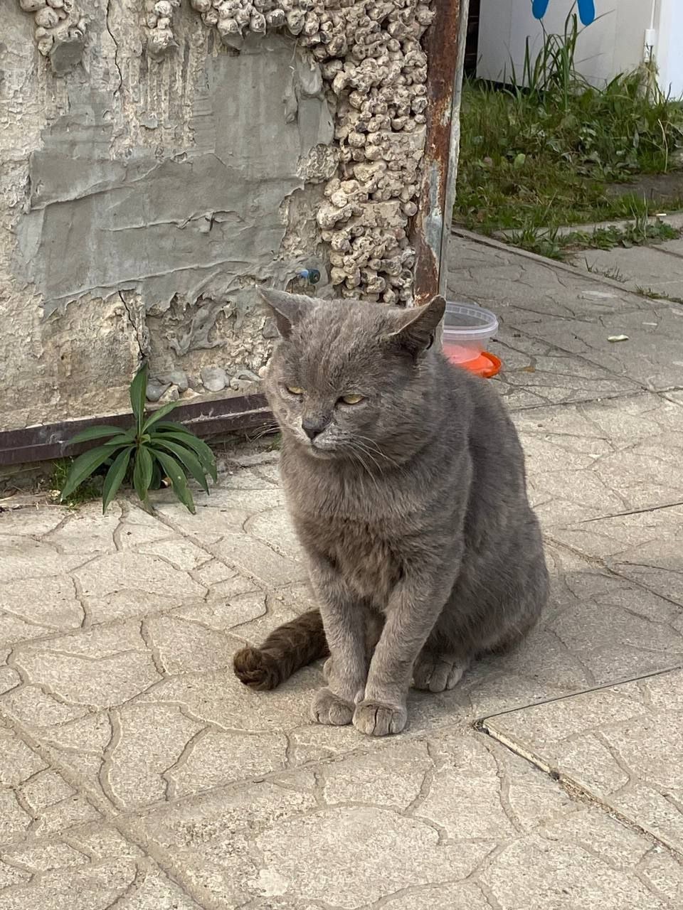 Это мальчик, не кастрат, очень контактный и ручной. Точный возраст не знаю, серее всего больше 5 лет. Если не можете забрать, хотя бы покормите и помогите информационно, вдруг кто захочет укотовить его🙏🥹💔