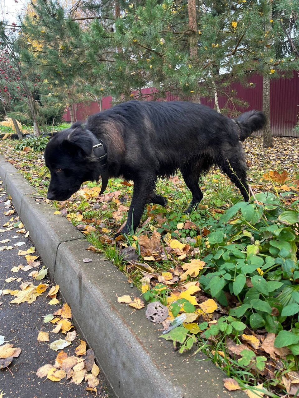 С утра бегает пес, в ошейнике. Мечется, видно, что потерялся. Адресника нет. Возможно, убежал с ближайших частных домов.