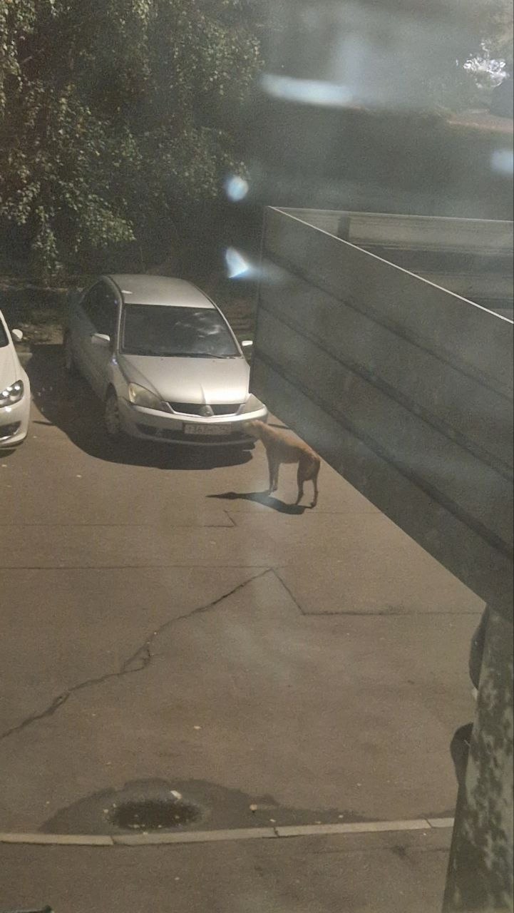 Большая собака, рыжая или кремовая, без ошейника, бегает с поджатым хвостом под домом и громко лает без остановки уже больше двух часов, дальше окрестностей дома не убегает, в чате соседей тишина, в городском чате о потере тоже молчат, к сожалению не могу к ней выйти, дома с маленьким ребенком