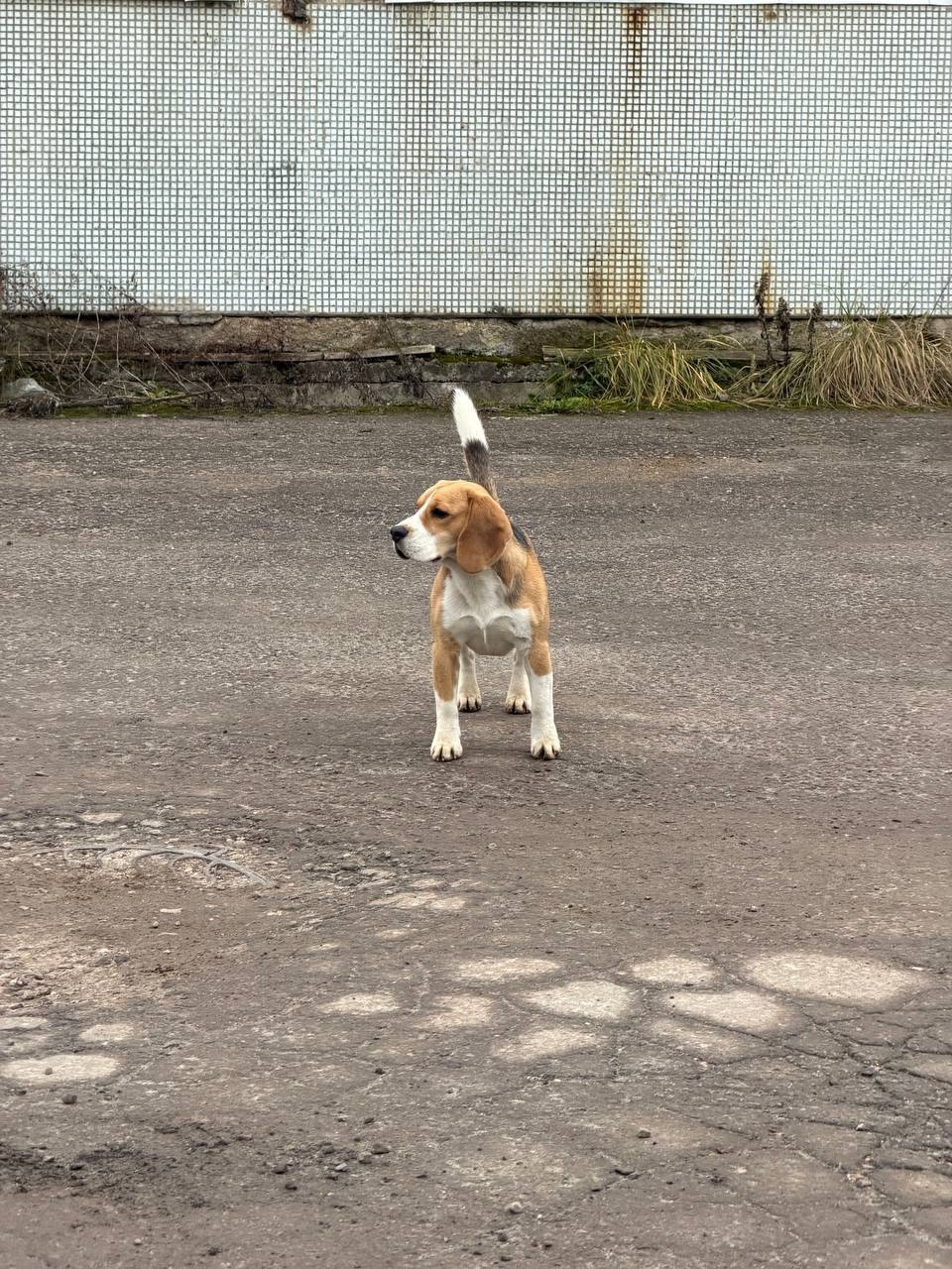 На территории складов/заброшки с.Ангелово был обнаружен пес бигль, пугливый, по лаю могу сказать, что давно его слышали, конкретно сегодня супруг пошел искать нашего кота и обнаружил собаку, там много бродячих, но этот породистый, без ошейника