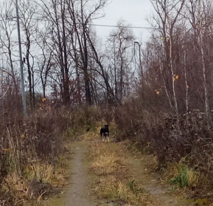 На Морозово вдоль дороги бегает собака с щенками. Ближе не удалось сфотографировать, убегает.
