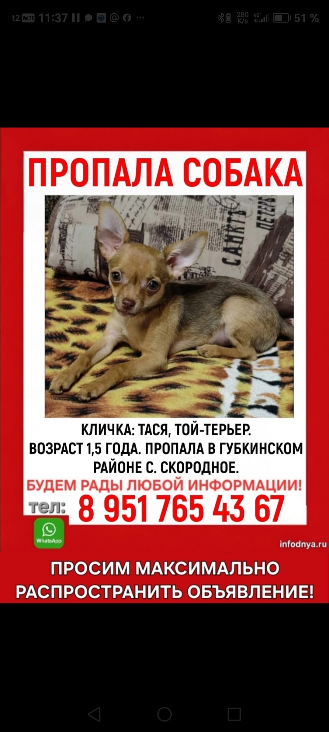 ⚡❗ Помогите найти ❗⚡🆘 Пропала собачка маленького размера,..