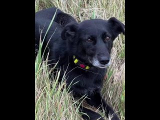 Девочка, метис, черный окрас, чуть седая морда, с желтым ошейником