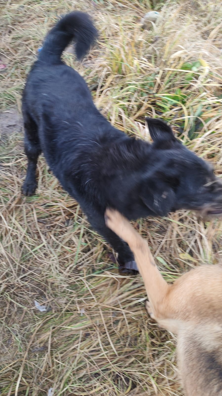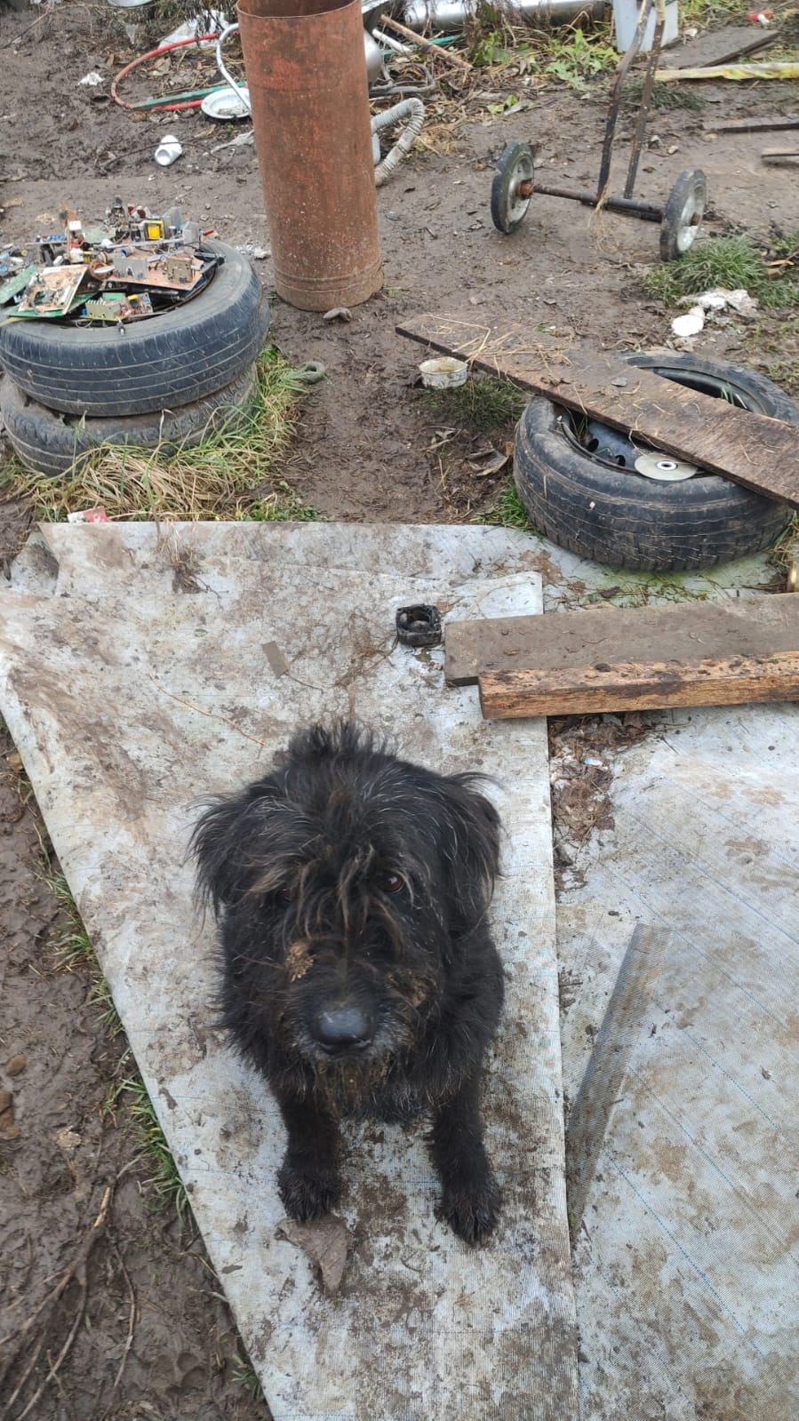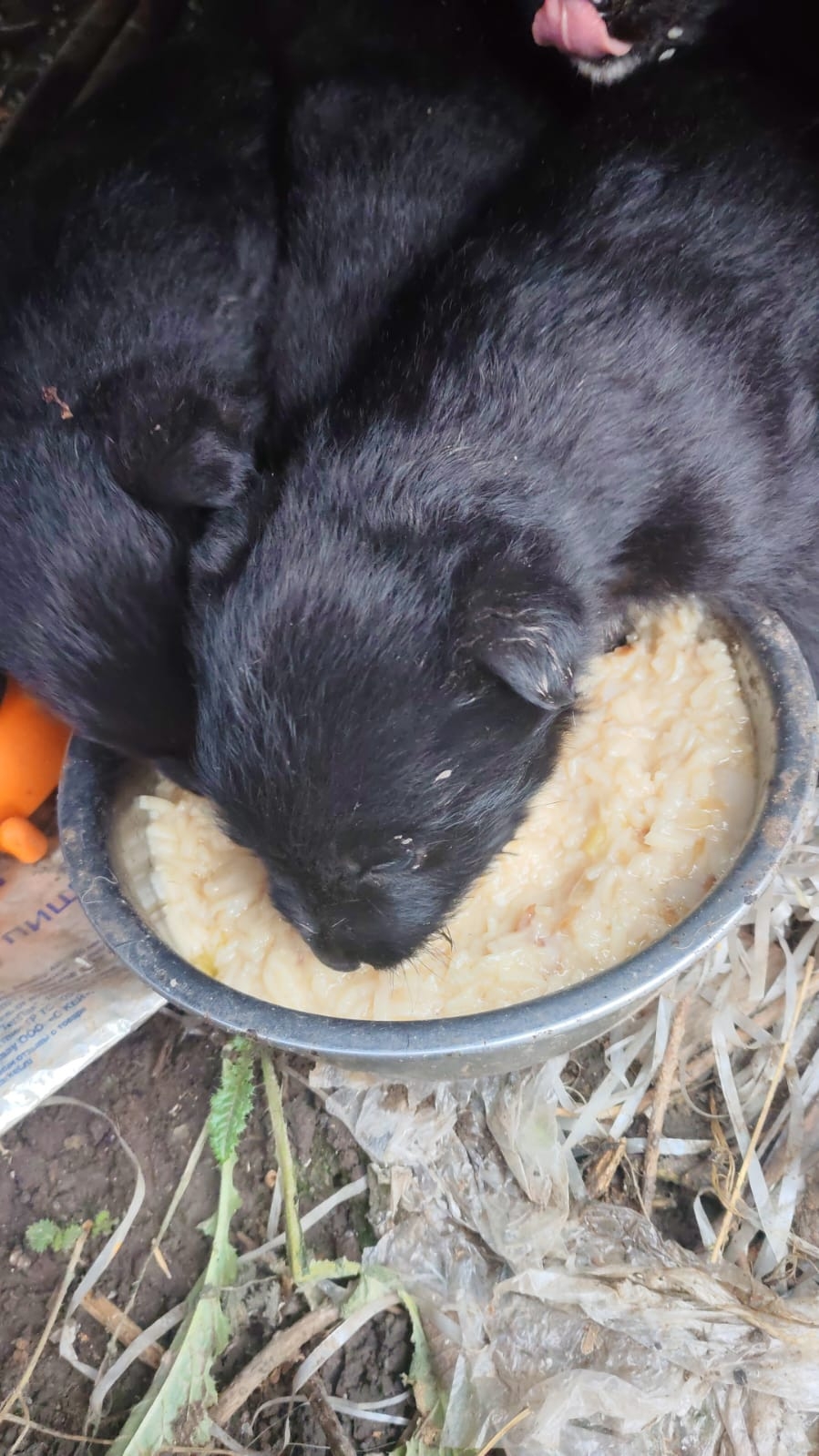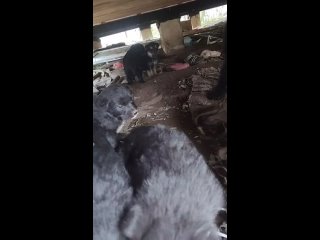 В одной из деревень района под домом выживает семейство. Ризеншнауцер, её дочь подросток (6 мес.) и 8 щенков (1,5 мес.).