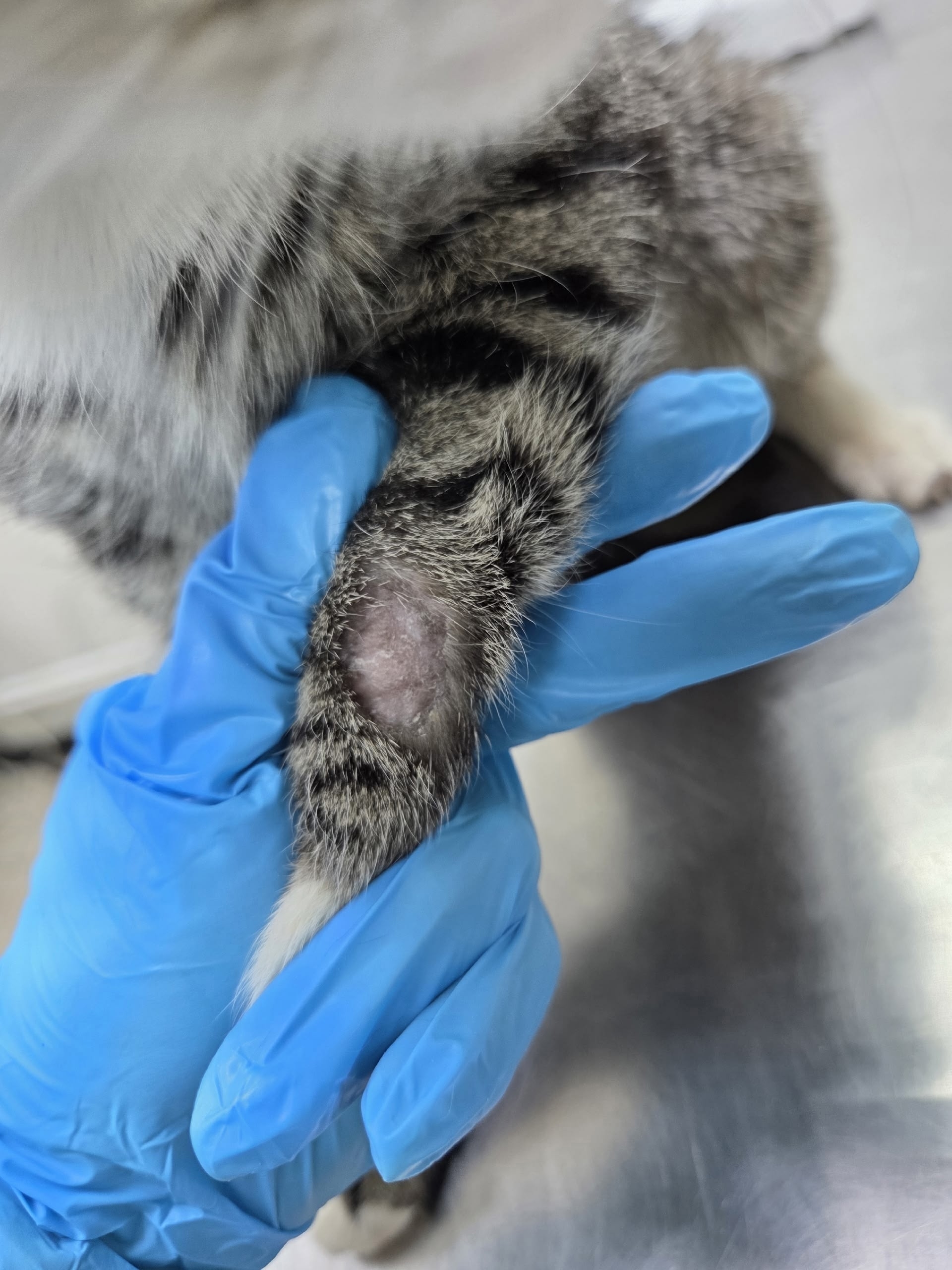 Знакомьтесь – это Аврора… Ей около 7 месяцев, она истощена, на хвосте засохший зловонный понос, истощение на фото не видно, но она просто скелет обтянутый кожей, лейкоциты повышены, анемия и… Барабанная дробь – все 4 лапы ободраны, передние частично скальпированы, врач предполагает ожоги и вторичная инфекция..