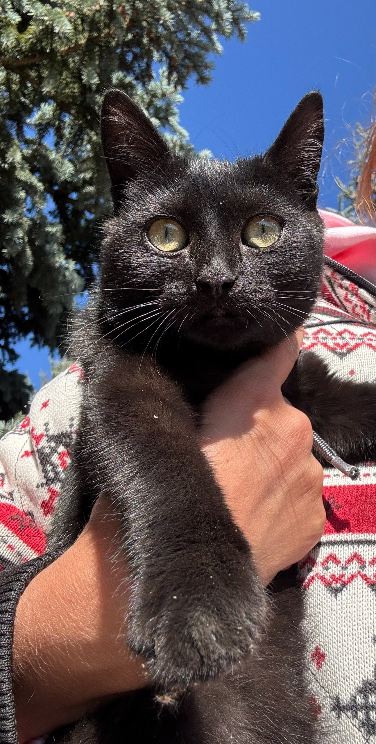 Это красивучая девочка,темно-шоколадного цвета с желто-зелеными глазами