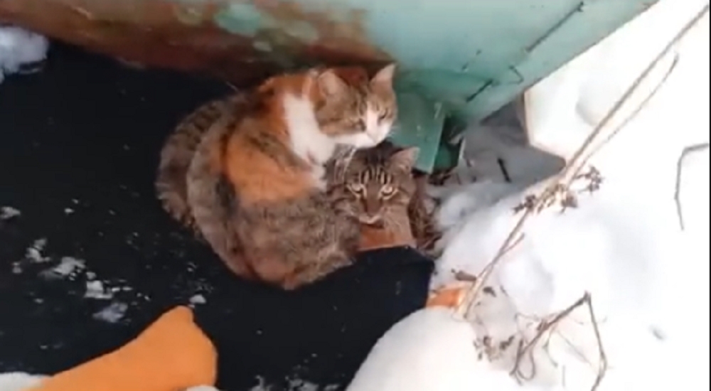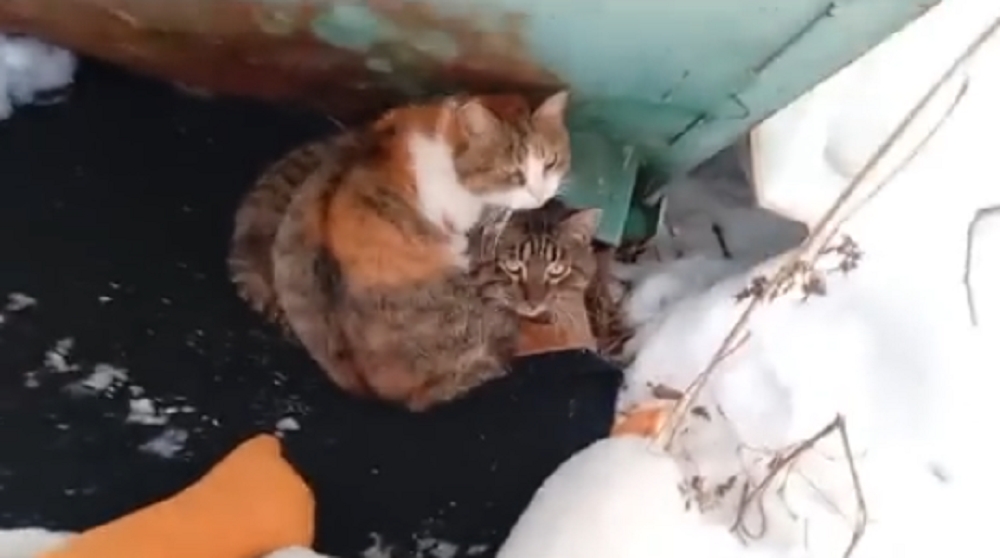 🚨Кошка ещё и беременная 🚨 а кот ее защищает и пытается согреть 🆘
