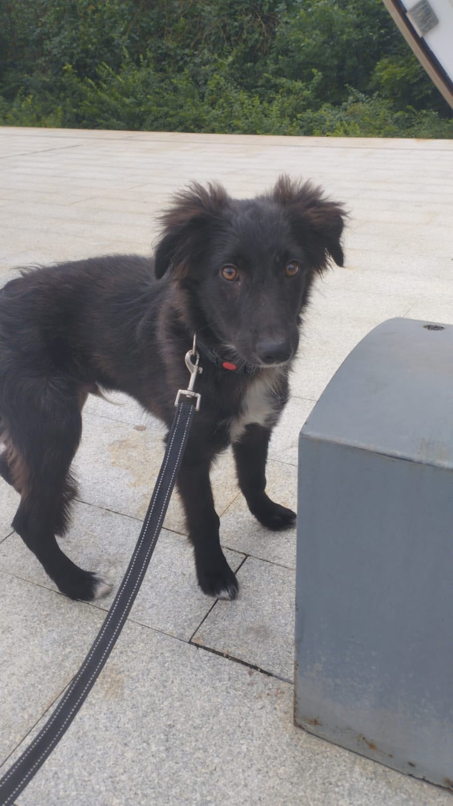 Кобель, похожий на щенка бордер-колли, мес 3-4 ему, весит ок 10кг.