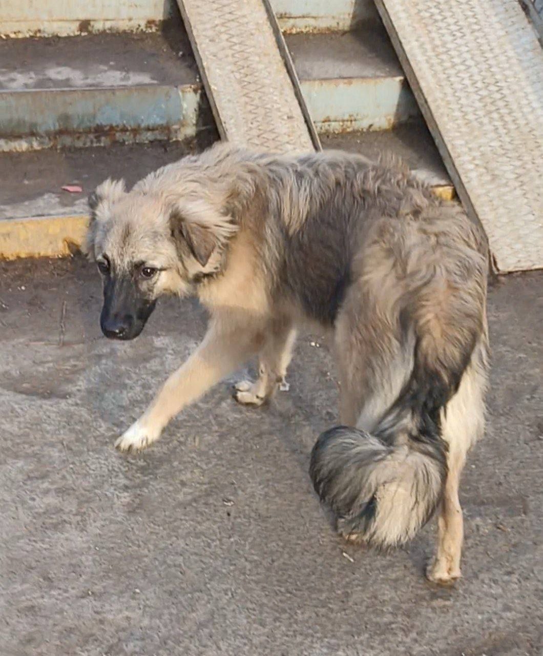 Скулит, к людям подходит. У касс ж/д станции Депо. 13:40, 7 декабря 2025 г.