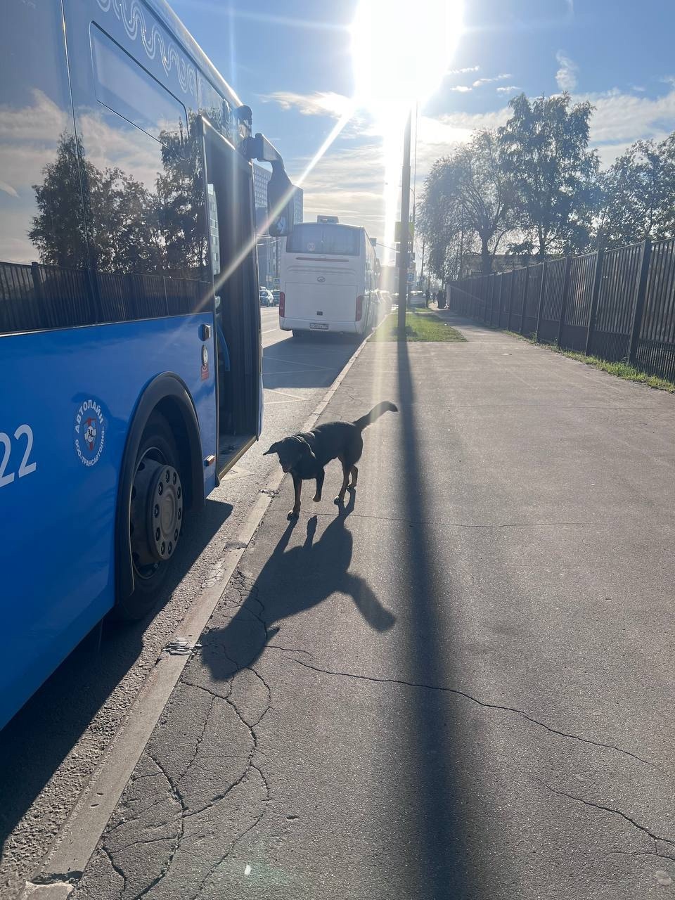 Остановка около Любовь и голуби, 215 автобус, вышла собака и потом обратно зайти хотела, не успела. Без амуниции. Может кто-то знает чья?