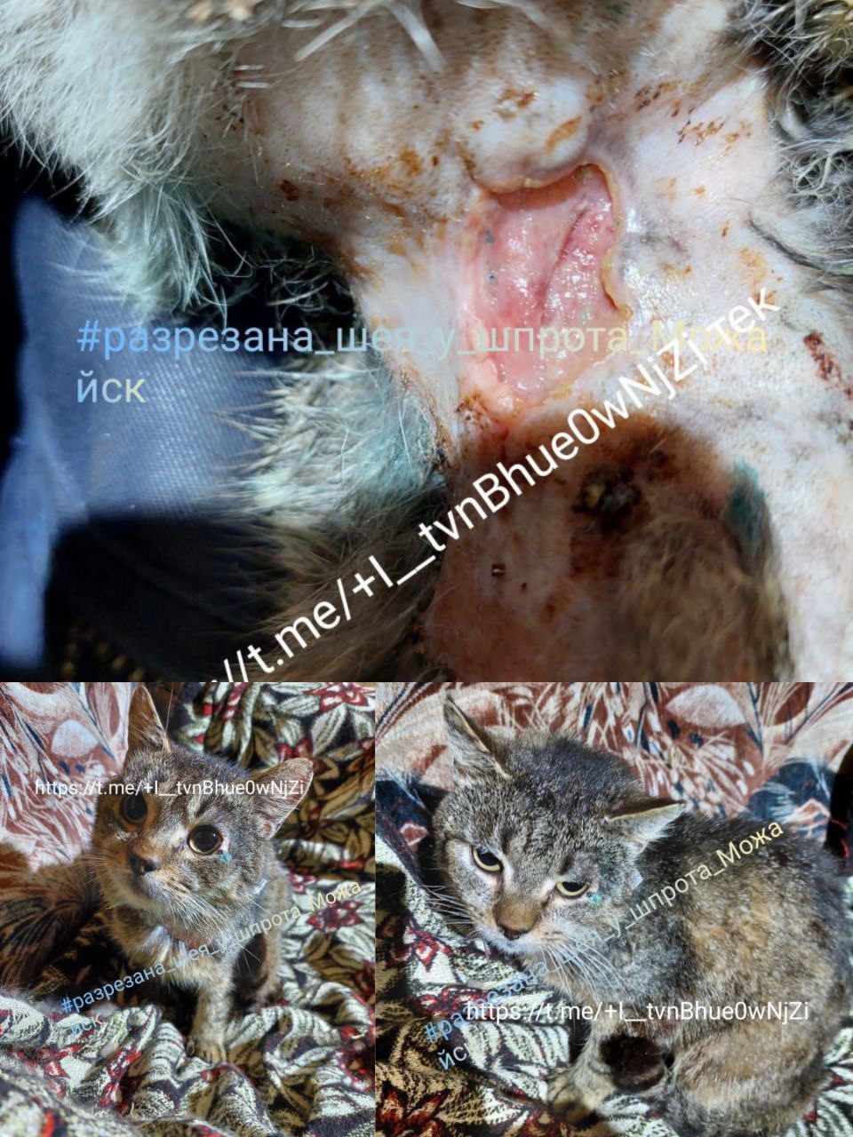 🛑У кота открытая рана на шее! В деревне, в Можайском районе его..