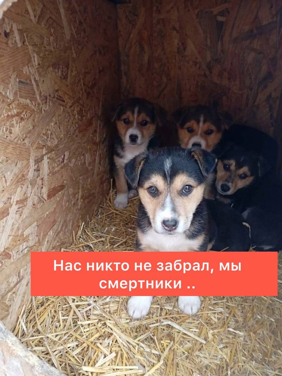 На фото жмутся друг к другу четверо 3х месячных малышей, которым осталось жить считанные часы..