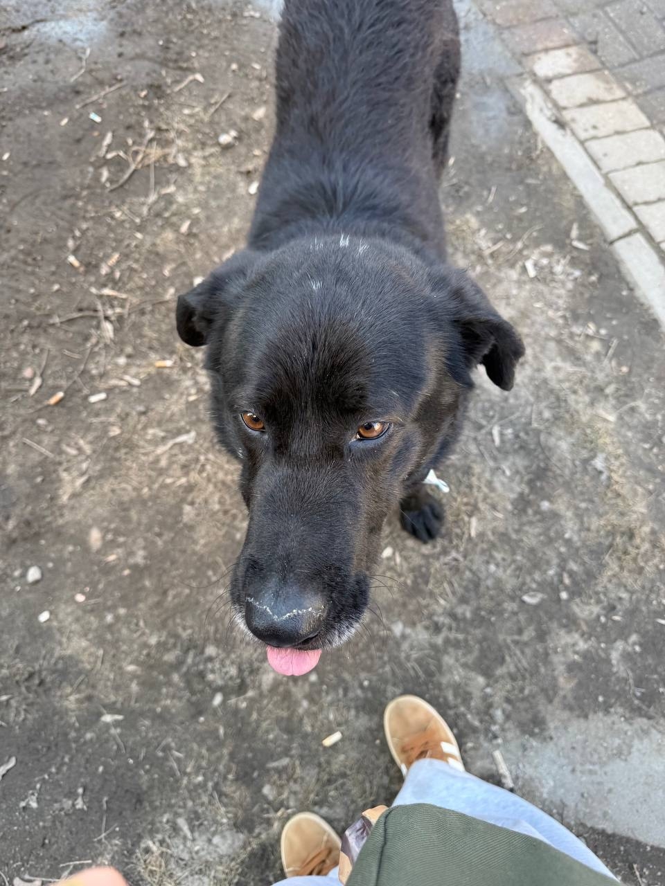 Бывшедомашний. Знает команды, приносит палку, ласковый. Черный кобель. Может кто-то помочь с передержкой или поиском хозяев?