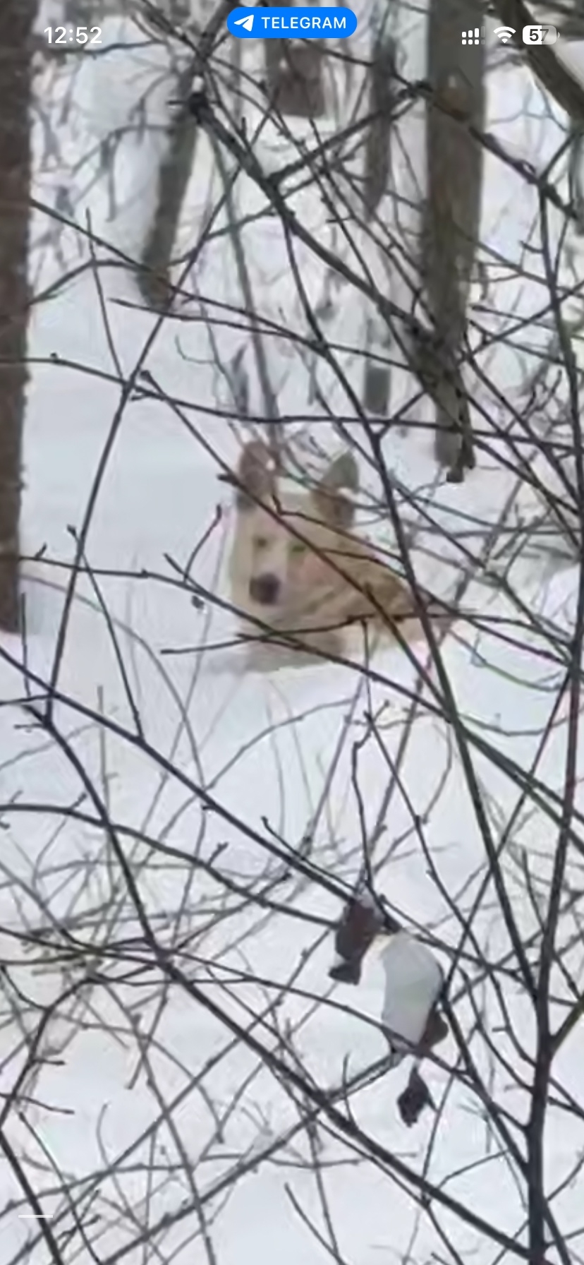 Бегает собака, видно что ищет хозяина, большая, похоже на лайку, у кого есть возможность распространить по группам, рост примерно по колено может выше, палевый, белая полоса на морде, выбежал на тропу к мужчине понял что не хозяин убежал опять в лес и лёг в сугроб