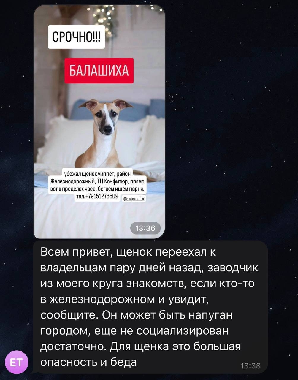 ВК "Агата" Балашиха Железнодорожный В районе ул. Маяковского сорвался с.. Автор admin Опубликовано Дек 4, 2025 1 0 Поделится Балашиха Железнодорожный В районе ул. Маяковского сорвался с поводка пес по кличке Дубай, порода уиппет. Нашедшему просьба позвонить: 89151276509 https://t.me/HvostatPatrul/203495 0 1 Поделится FacebookTwitterGoogle+ReddItWhatsAppPinterestЭл. адрес
