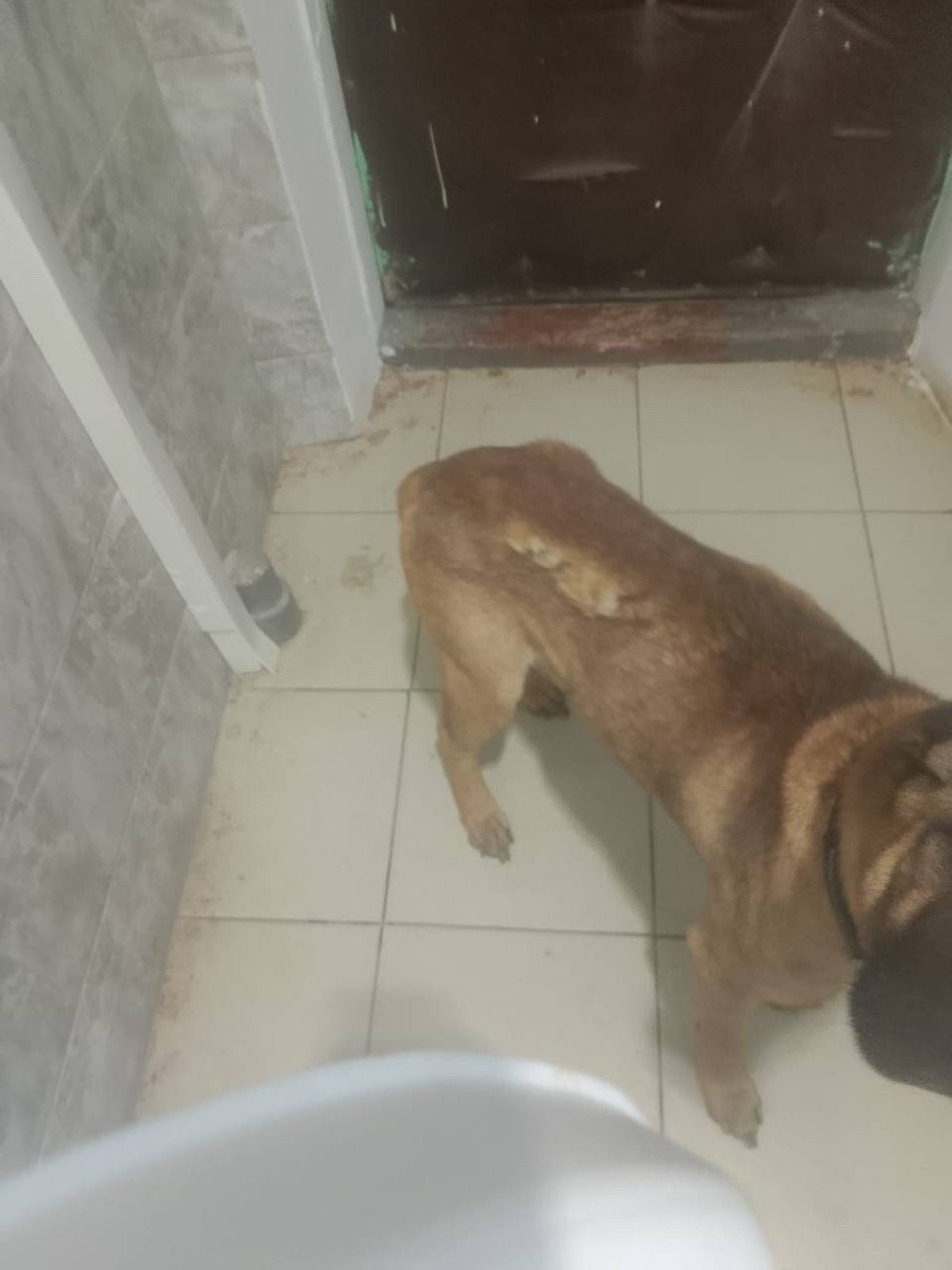 Он настолько боится,что он ходит под себя.