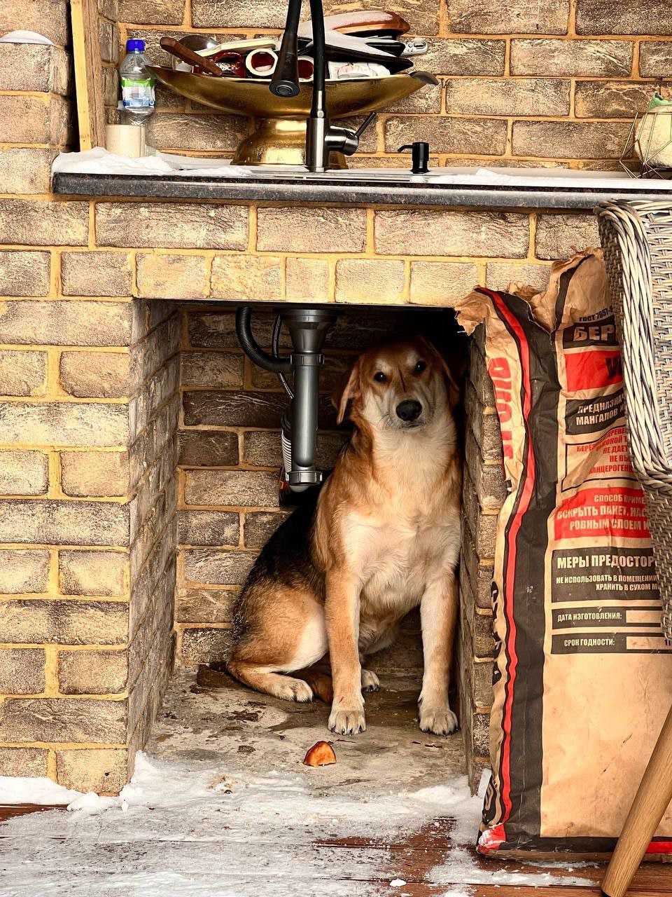 Приблудился пёс на участке, живет на летней кухне, из-под раковины не выходит, рычит. Спит на морозе!