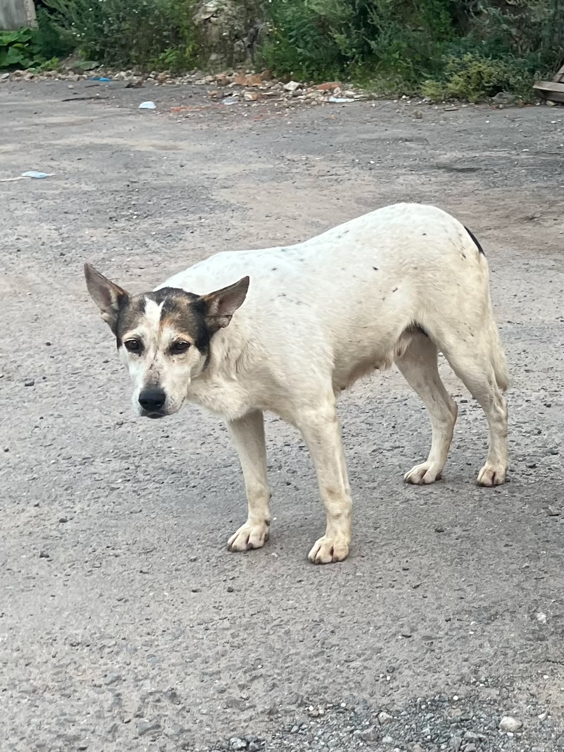 Окрас: Белое тело в темное пятнышко, морда Белая с темными ушами