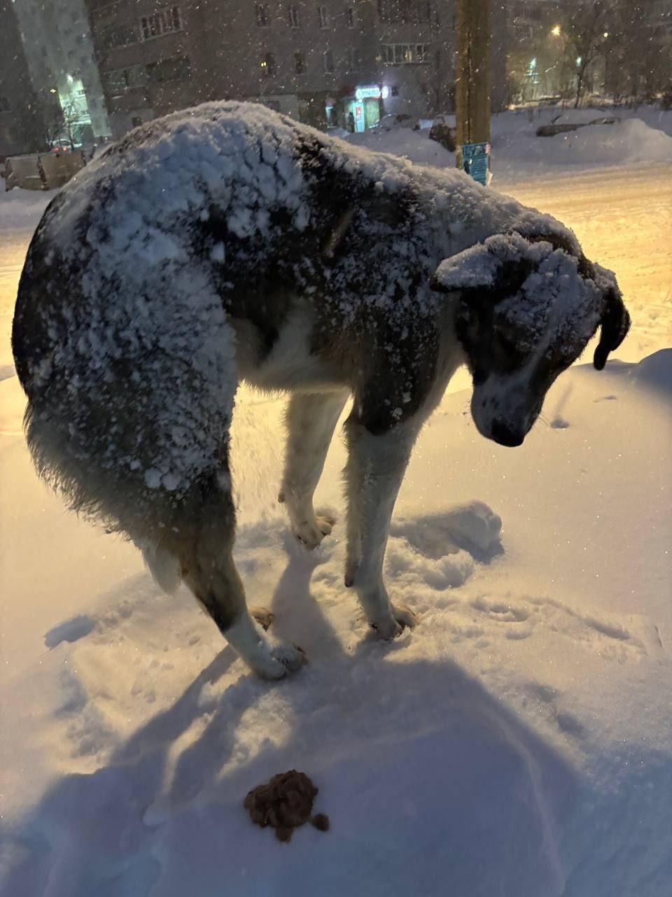 Уже почти неделю на одном месте и мороз -22 и метель. Ничего не ест. То ли потерялся, то ли выкинули.