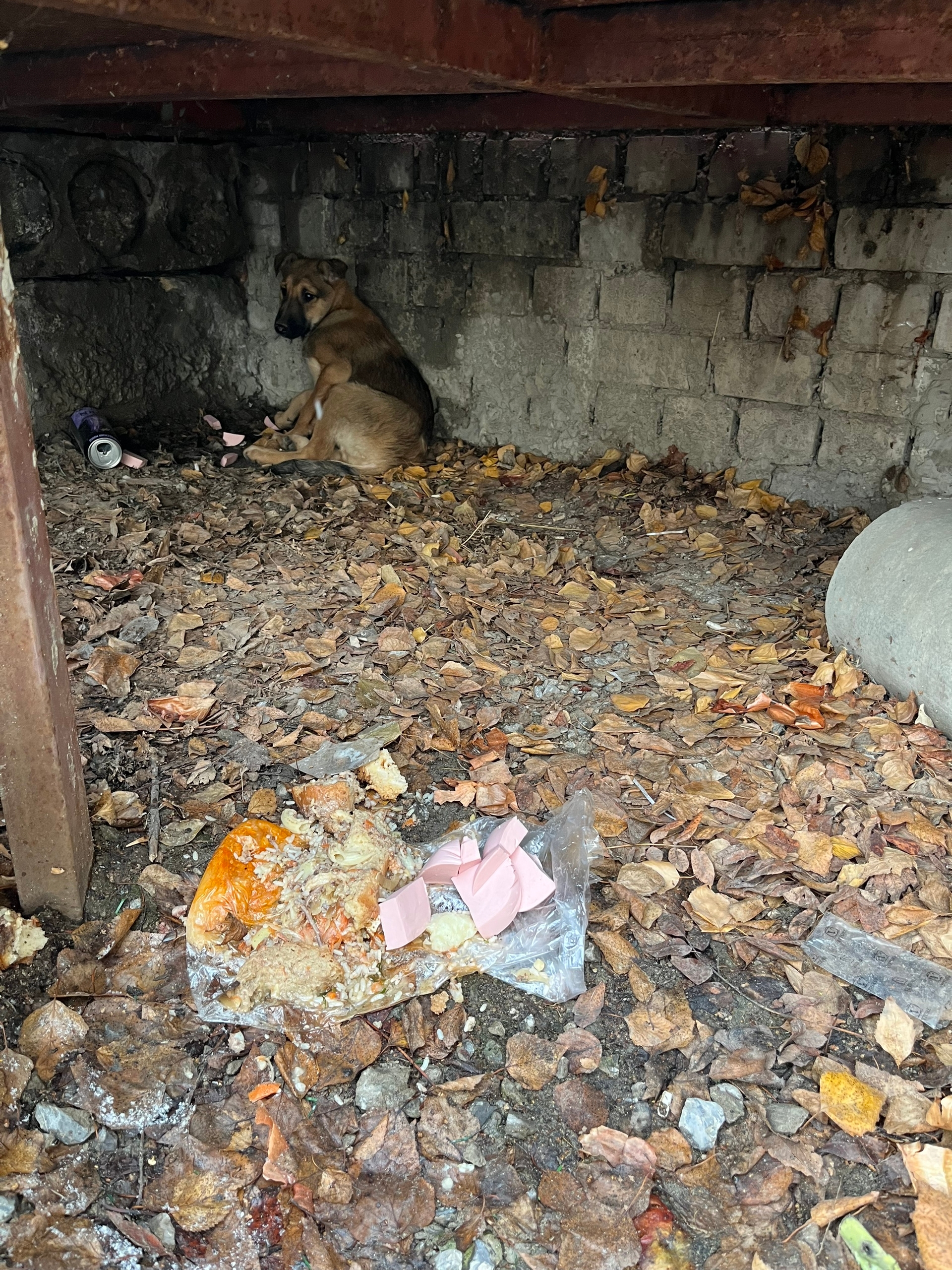 Во двор подкинули щенка , забился под лестницу и очень сильно скулит от холода , на улице очень холодно , он весь трясется , вынесла ему теплого молока и теплой еды , куртку чтобы как то туда укутался , но это не спасет его , помогите пожалуйста