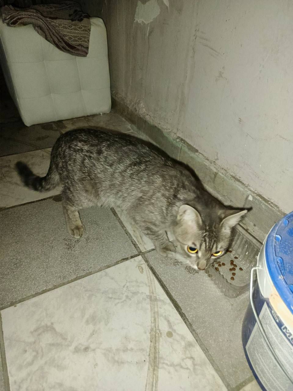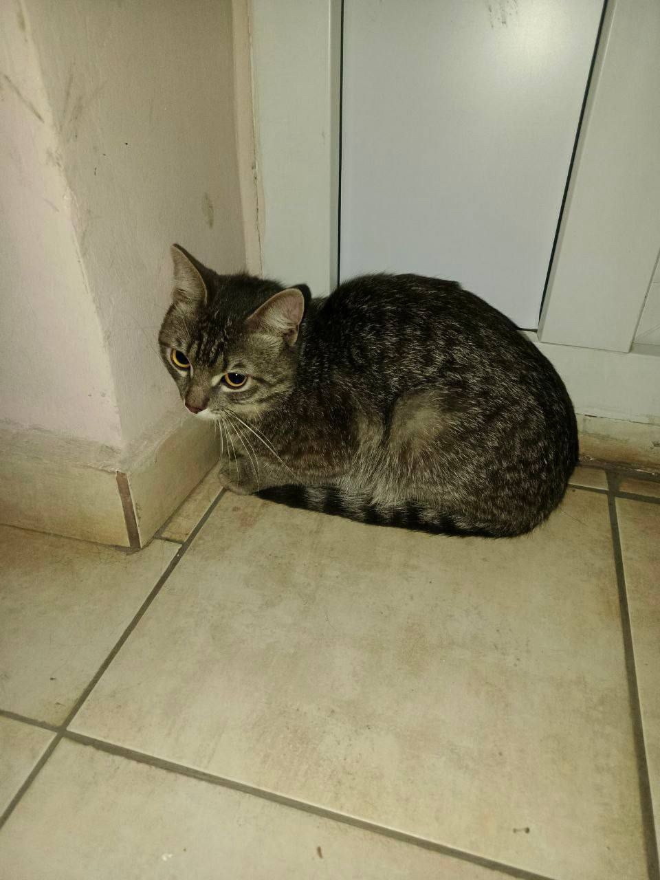 ХИМКИ, Юбилейный проспект, в районе Стадиона, остановка Стадион Новые Химки, 17.11 был найден серый котик, шпротного окраса, глаза желтого цвета, бегал за прохожими, плакал.
