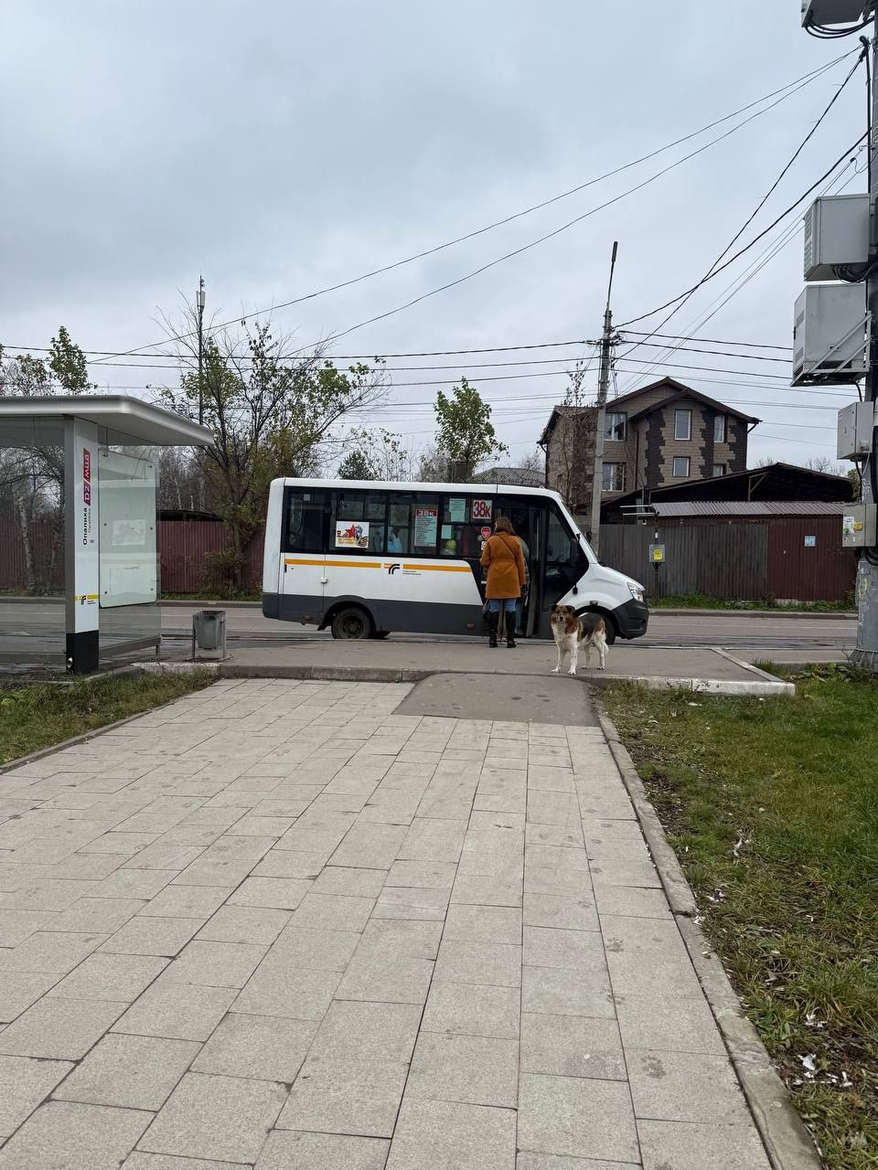 Кабель на остановке со стороны старой Опалихи к станции . Людей не боится. Голодный .