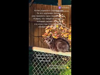 живёт в садоводстве, я его подкармливаю, материального готова помочь в вопросах ветеринара и питания, но взять не могу, скоро уезжаю отсюда и он останется совсем один. Очень прошу помочь в распространении информации. Котика называю Шиком. Поэтому соответствующий хештег,чтобы отслеживать комментарии, но пишите в личку лучше.