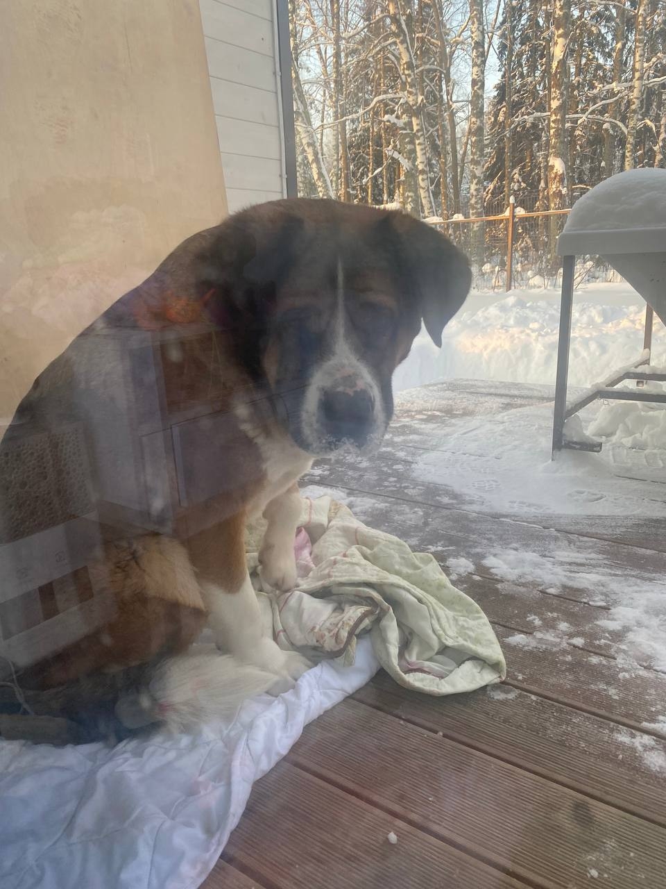 Два дня как к нам пришла очень дружелюбная сука. кормим, поим, подстилку сделали, но домой взять не могу, у меня кокер, также сука и 4 кошки. хозяин найдись! очень хорошая собака! впереди морозы ночные, это, конечно, не йорк, сенбернар судя по всему, но все хотят спать дома❗