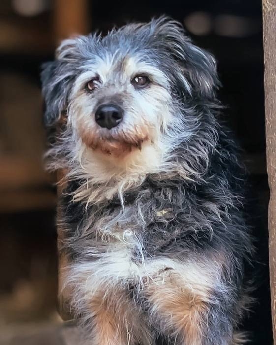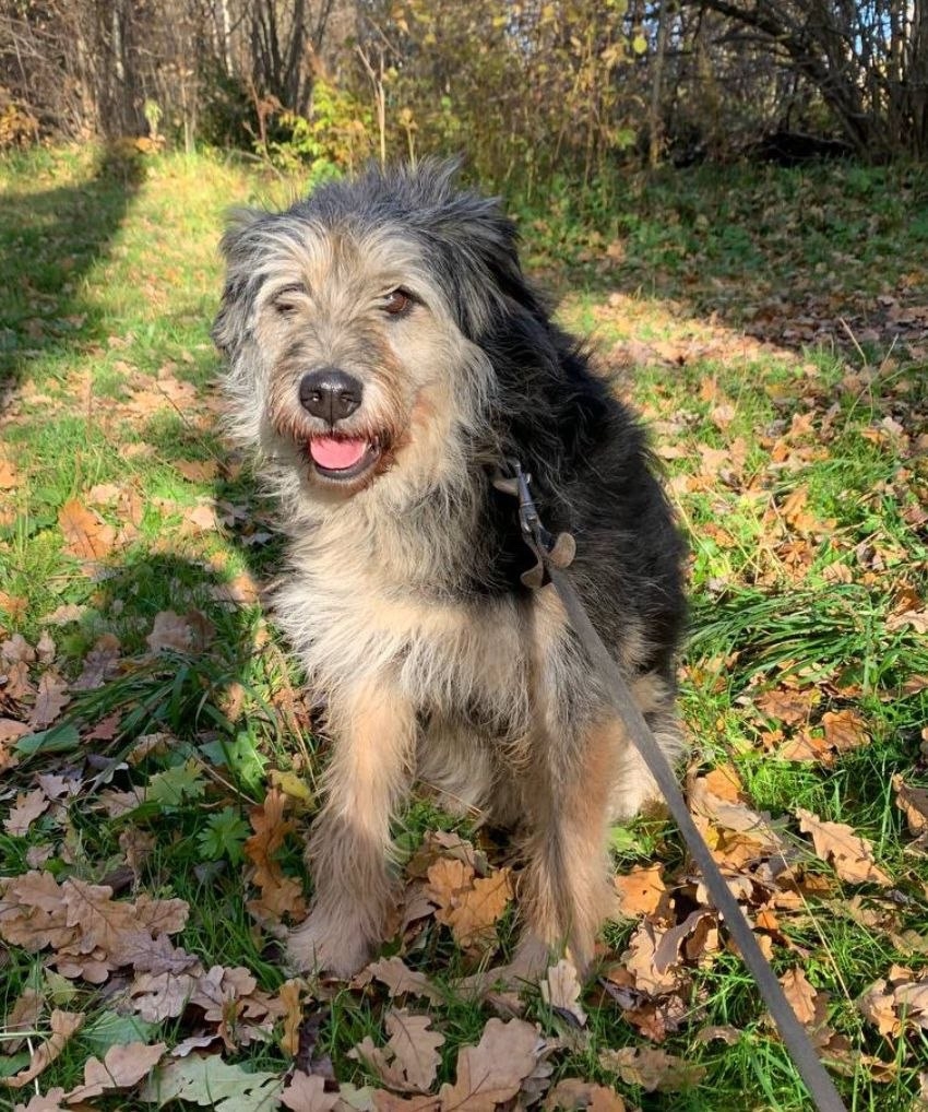 27.03. Кличка Бетти жесткошерстная, чепрачного окраса. Возрастная, добрая, в чёрном ошейнике.