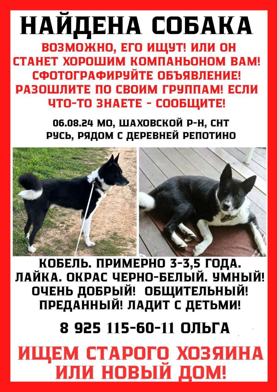 МО, Шаховский р-он Найдкна собака 6.08.24 Нужна помощь в поиске..