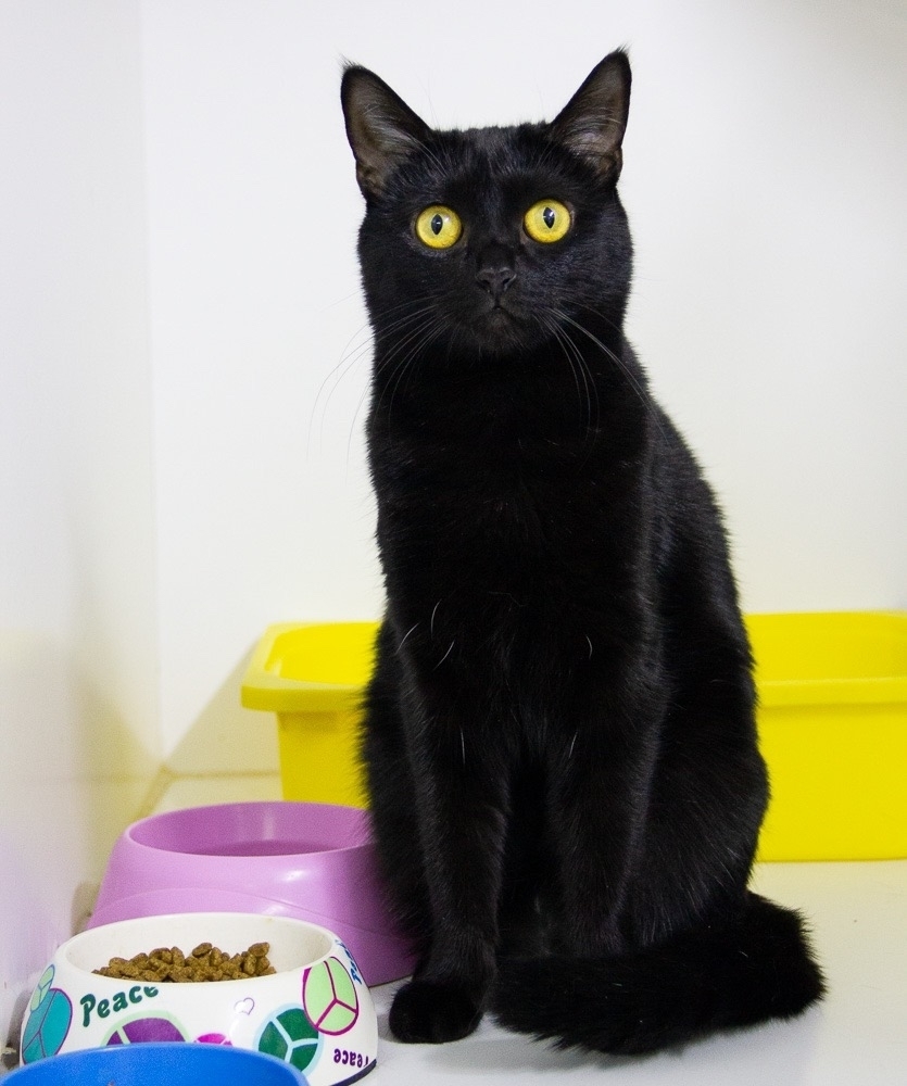 Серена как ожившая статуэтка из эбенового дерева, изящная и грациозная. Гладкая шёрстка сияет, по ней так приятно провести ладонью. Мордочка очень похожа на британскую – возможно, эти гены имеются в наличии 🙂. Потому что и характер похож – Серена ласковая, спокойная, любит внимание, без излишних тисканий. Но глаза её, пронзительно-жёлтые, смотрят словно в самую душу: “Ты мой человек? Когда ты заберёшь меня домой? Я скучаю!”