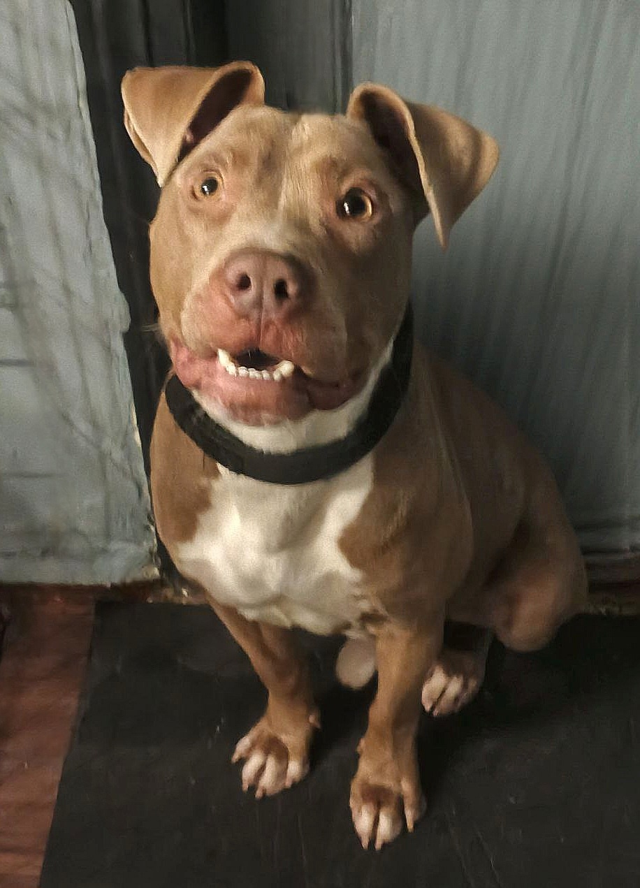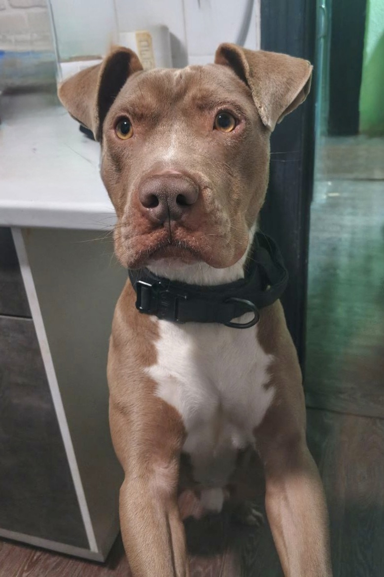 В самые добрые и ответственные ручки пристраивается красавец питбультерьер Ромазотти.