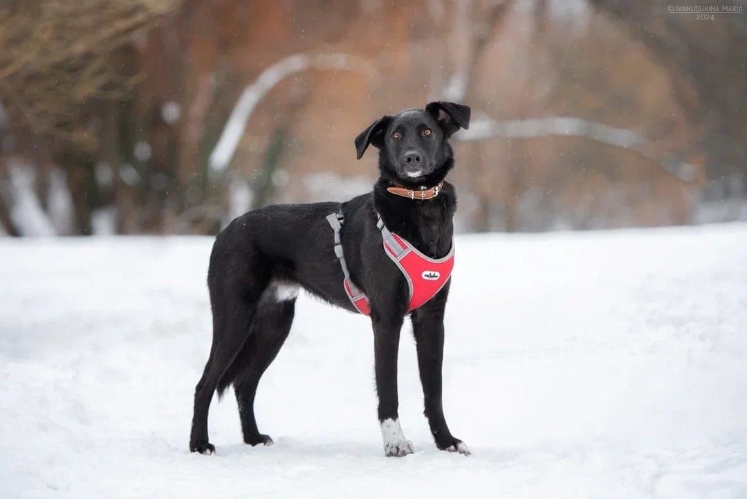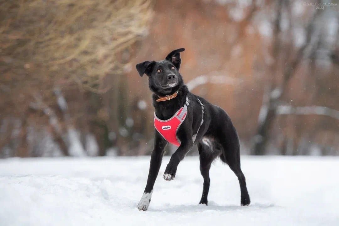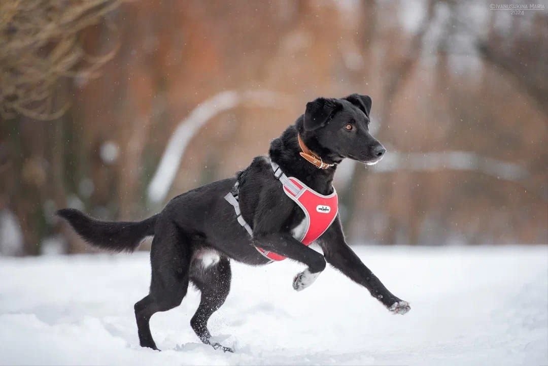 Отлично ходит на поводке. Ладит со всеми, обожает играть с кошками и собаками. Аккуратный парень, ест смешно, набирает полный рот корма и ходит жует 😁
