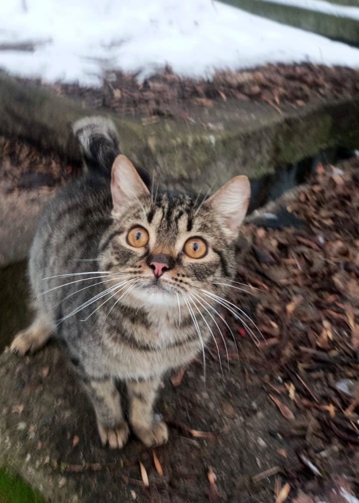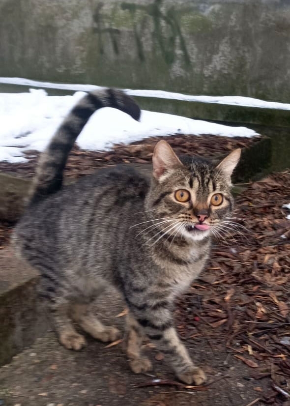 С удовольствием встречает свою кормилицу, радостный лезет с нежностями в объятия. Забрать его домой совсем нет возможности, уже и так много котиков не пристроенных😩😭