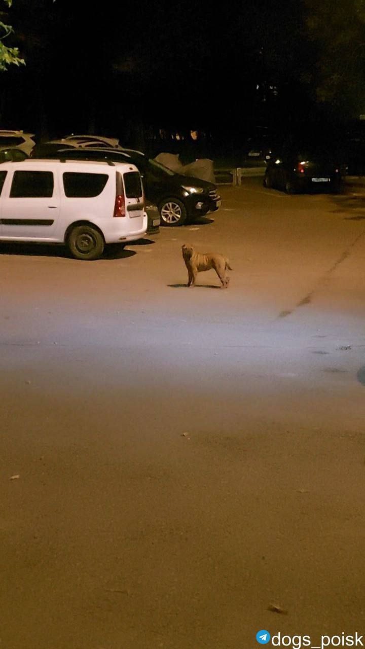 Шарпей рыжий бегает по улице, к людям и собаке не подошёл. Просто увидела, звала, поймать и забрать возможности нет. Бегает на условно закрытой парковке.