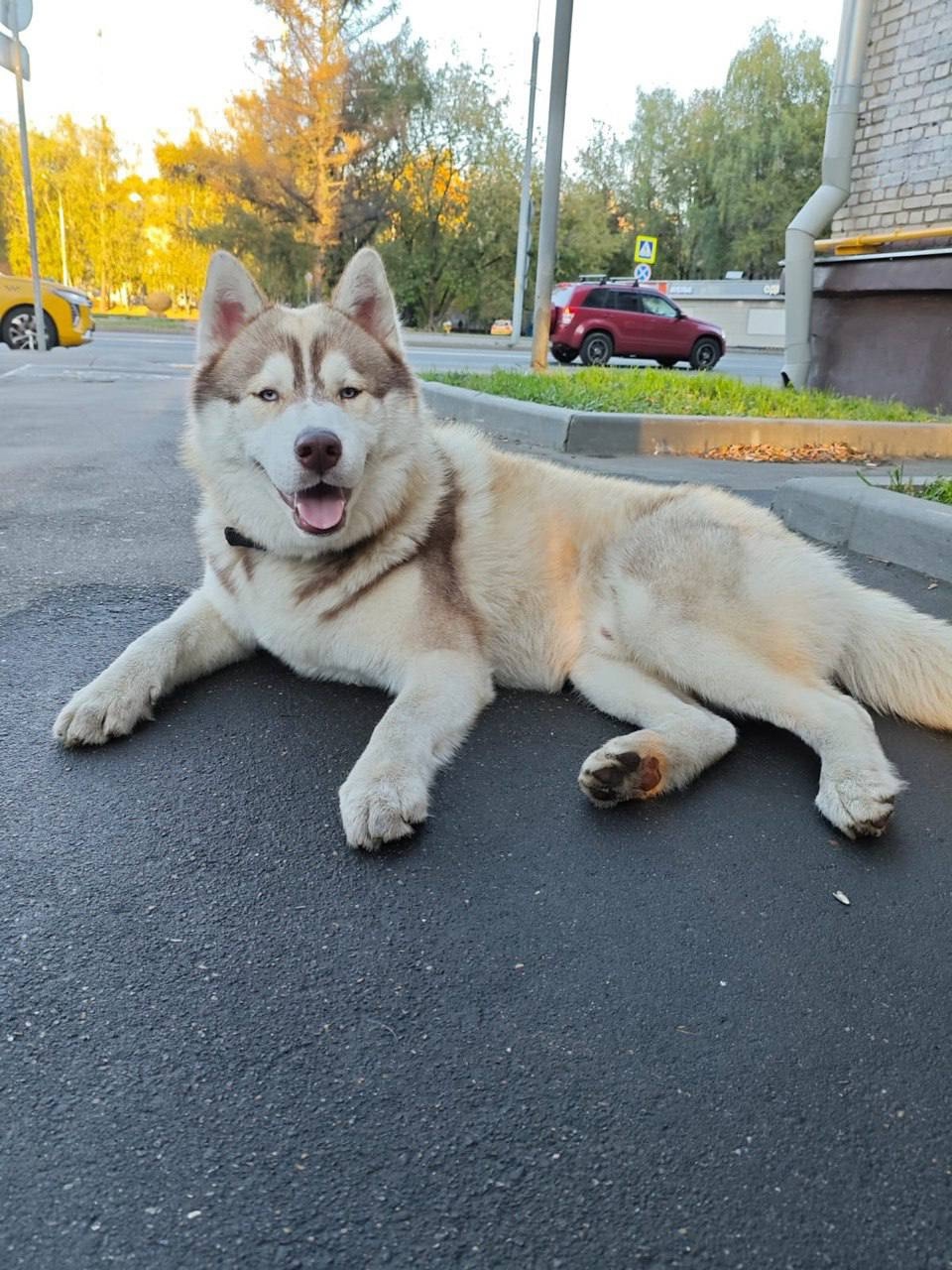 Соседи, кто потерял пёселя? Хаски (?) в черном ошейнике