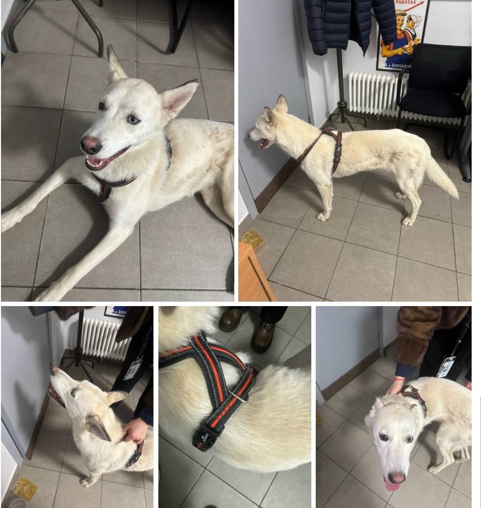 около Палеонтологического музея найдена бежевая собака в шлейке, похожа на лайку, с разными глазами. Девочка, молодая. Срочно ищем хозяина!
