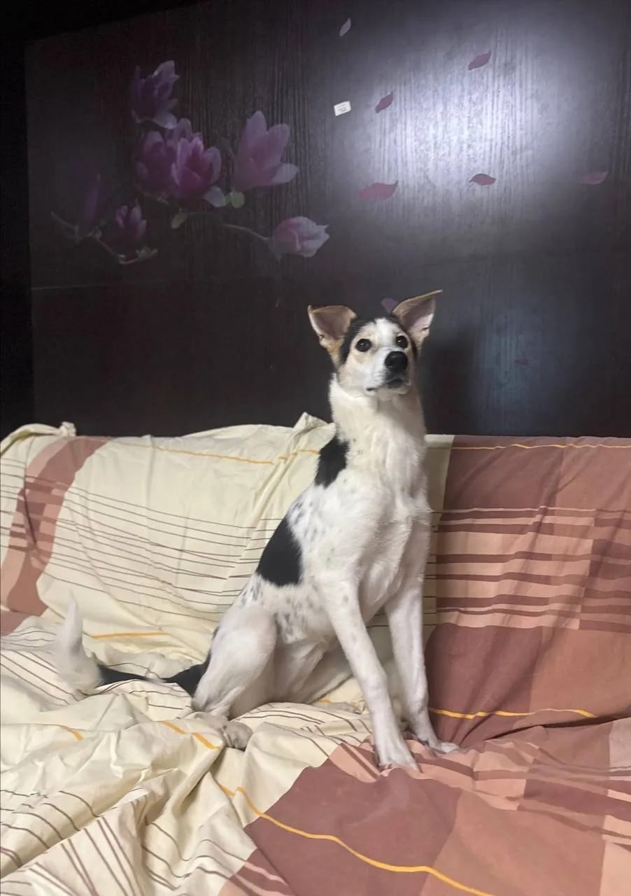 Щенком,чистым,домашним ,в ошейнике Айрис выкинули из машины на дороге поселка!Почти месяц она скиталась по улицам,голод,холод,выживала как могла,бегала по дороге за машинами,отдавили колесом лапу,хорошо обошлось без переломов !