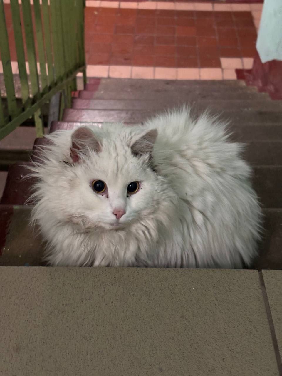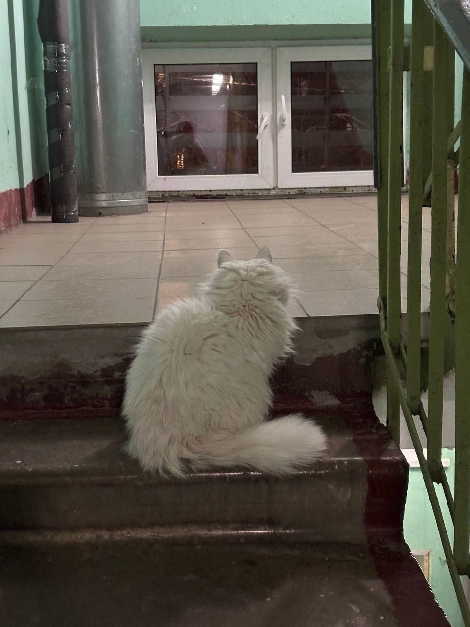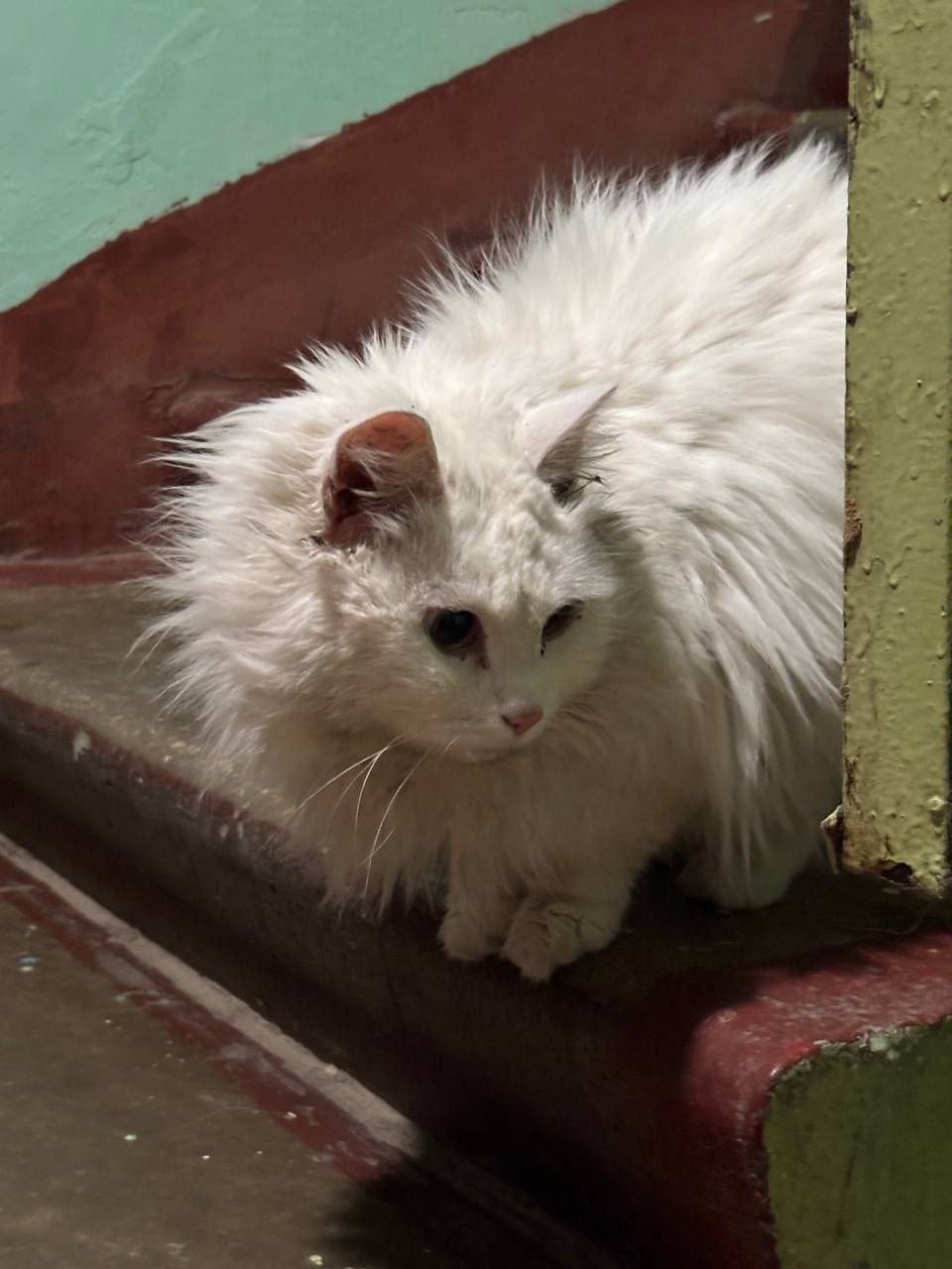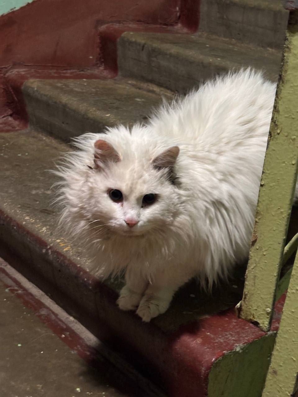 Похожа на домашнюю. Растеряна, хочет в тепло. Может, найдётся хозяин. Или, может, кто-то всегда мечтал о белом пушистом котейке 🤍