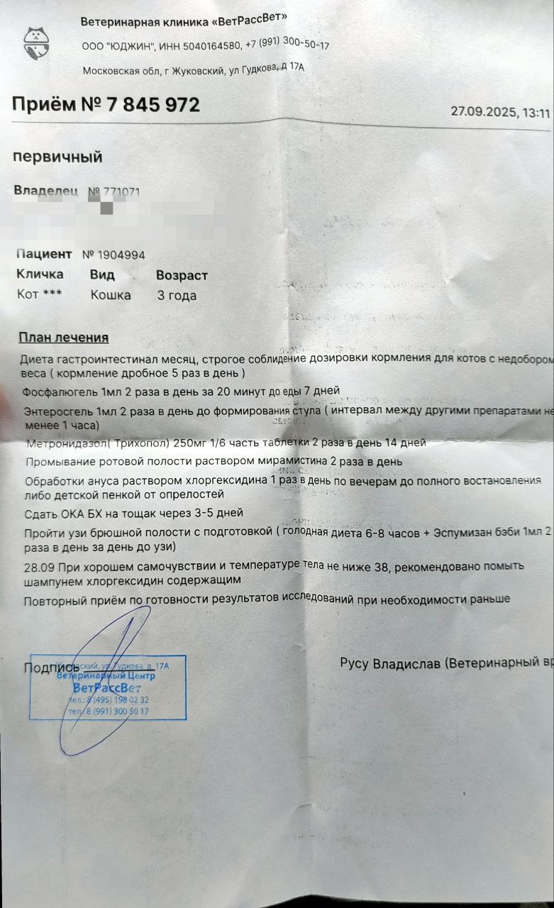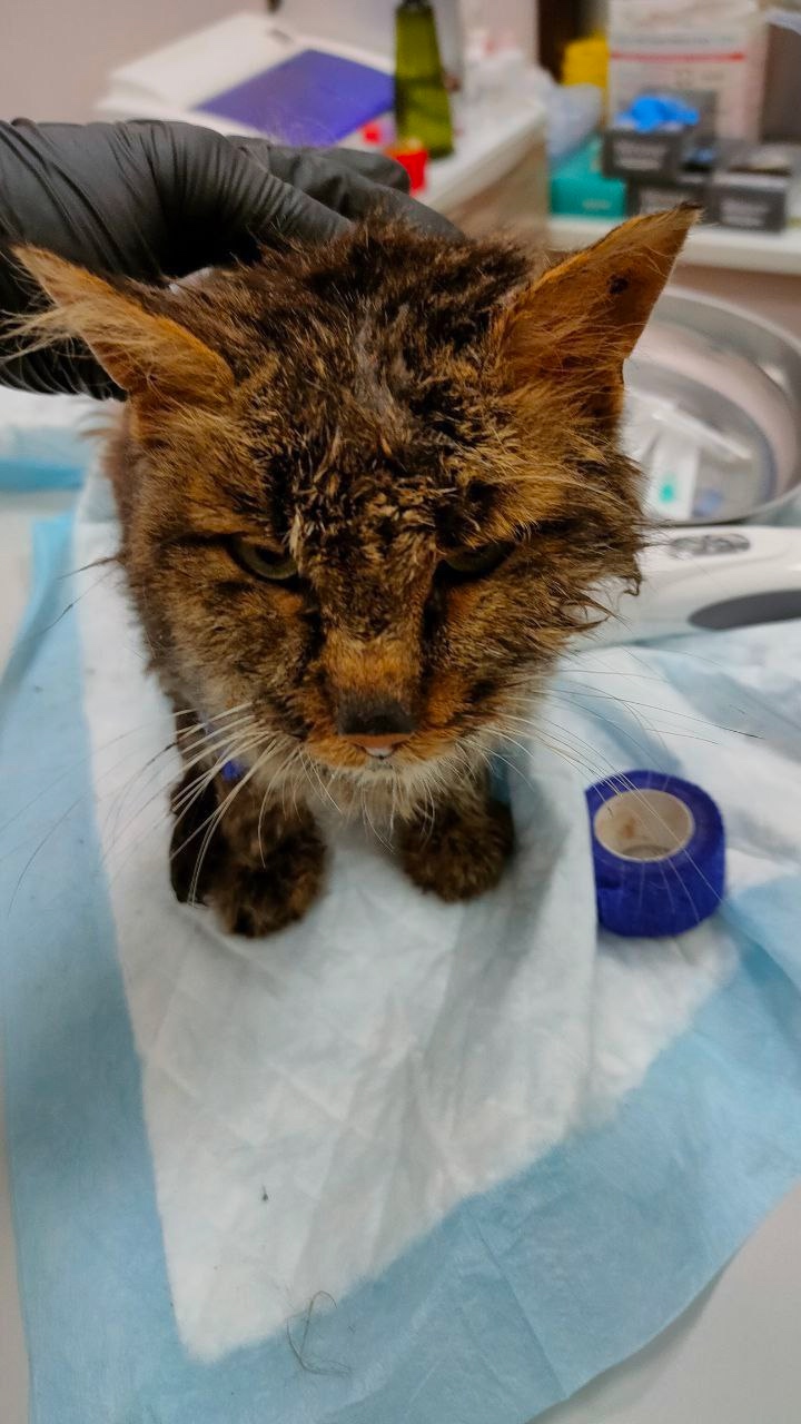 27.09.2025 на ул Заречная, пгт Малаховка Люберецкого ГО, МО найден кот в тяжёлом состоянии.